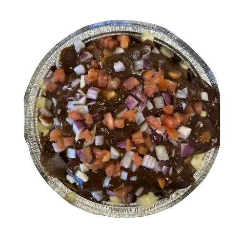 Donair meat, fries, gravy, red onions, tomatoes, donair sauce on the side and option for cheese curds or mozzarella.